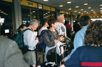 The trip over was the second longest day of our lives. At the time, it seemed like the longest, but as it turns out, the return trip was even worse! Just kidding. On Monday, November 29th, we were at the airport by 6:00 a.m. for an 8:00 flight. We flew on TWA from Tulsa - to - St. Louis - to Chicago. In Chicago, we retrieved our luggage and worked our way to the international terminal where we rechecked our luggage and checked in with Alitalia Airlines for our flights to Milan, Italy and on to TelAviv, Israel. After boarding the overseas flight, we all settled down for the 9 hour flight to Milan, and then an almost 4 hour flight to Tel Aviv. The time difference between Chicago and Milan was 7 hours with another one hour difference to Israel. As a result, by the time we endured a 2 hour plus bus trip from Tel Aviv to Tiberias, we had all been up from 5:00 a.m. Monday in Tulsa until 9:00 p.m. Tuesday in Tiberias, a total of about 33 hours. We all enjoyed a late dinner in the Royal Plaza Hotel - on the Sea of Galilee. Wake up calls were arranged by Shep - our Israeli guide.