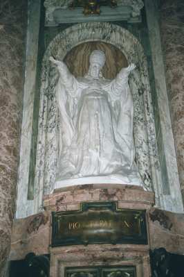 Next to Peter's tomb, which lies directly beneath the altar of St. Peter's, repose the remains of 147 popes including all of those who have led the Church in this century.