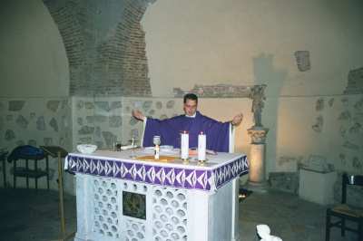 We took a quick tour of the amazing network of underground tombs and were then hurried to a small chapel near the entrance where Father Matt celebrated our daily mass just before sunset. After mass, we headed back to Rome for dinner and a well deserved good nights rest.