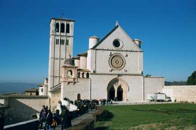 Assissi is one of the very few cities that was not destroyed during World War II. By agreement of all parties, Assissi was declared a Red Cross city and the red cross was painted on the roofs of most of the buildings. However, the Basilica of St Francis on the top of the hill was badly damaged by an earthquake on September 26th, 1997. Luckily for our group, the restoration of the basilica was completed very recently and was reopened to the public just the week before our trip. The restoration artists had spent over three years carefully picking up the individual chips of paint that had fallen from the ceilings and walls and then painstakingly replacing each chip to the specifications of the digital photographs that had been taken before the earthquake. They estimate that they have restored approximately 80% of the original works of art.